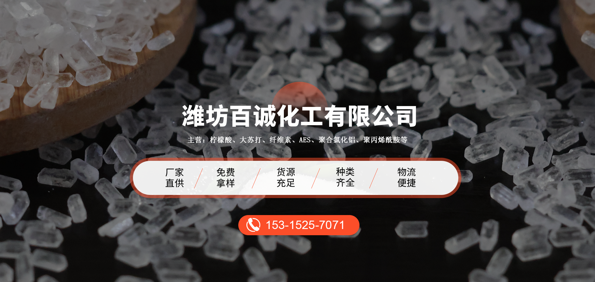 成立于山東的濰坊百誠化工有限公司多年來與國內(nèi)外多家企業(yè)工廠 形成長期合作,形成了競爭力的化工原材料供應、銷售和服務 渠道,主營:大蘇打、葡萄糖、檸檬酸、纖維素、消泡劑、AES等。
